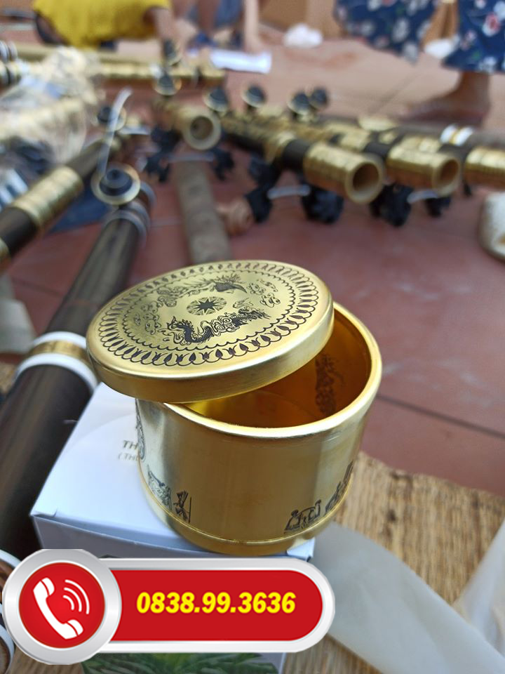 - Chất liệu đồng nguyên chất: Hộp được làm từ đồng vàng hoặc đồng đỏ dày dặn, chịu va đập tốt, càng dùng lâu càng sáng bóng (lên nước), không lo gỉ sét hay vỡ hỏng như hộp nhựa, gốm sứ.